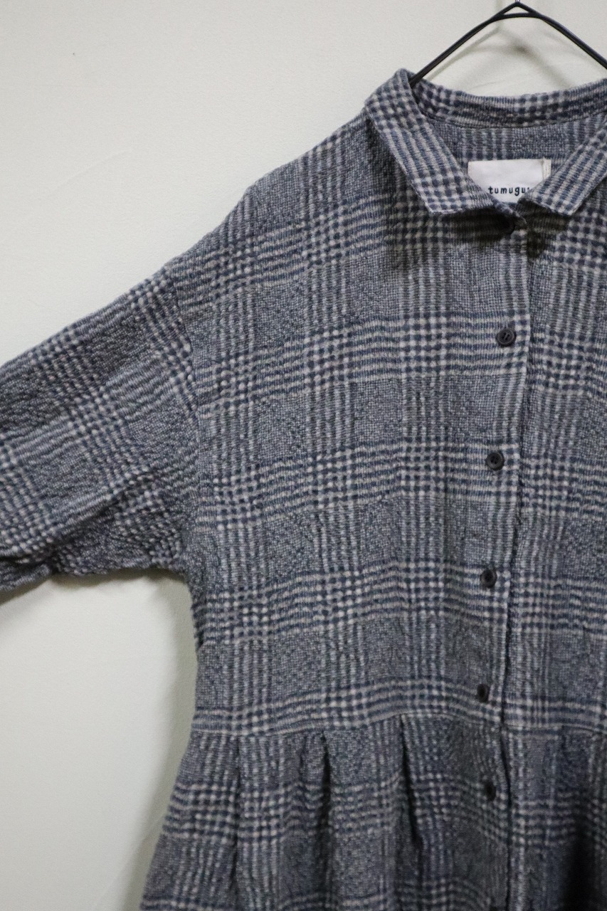 tumugu;コートワンピースコットンウールグリンチェック41,800円(税込)