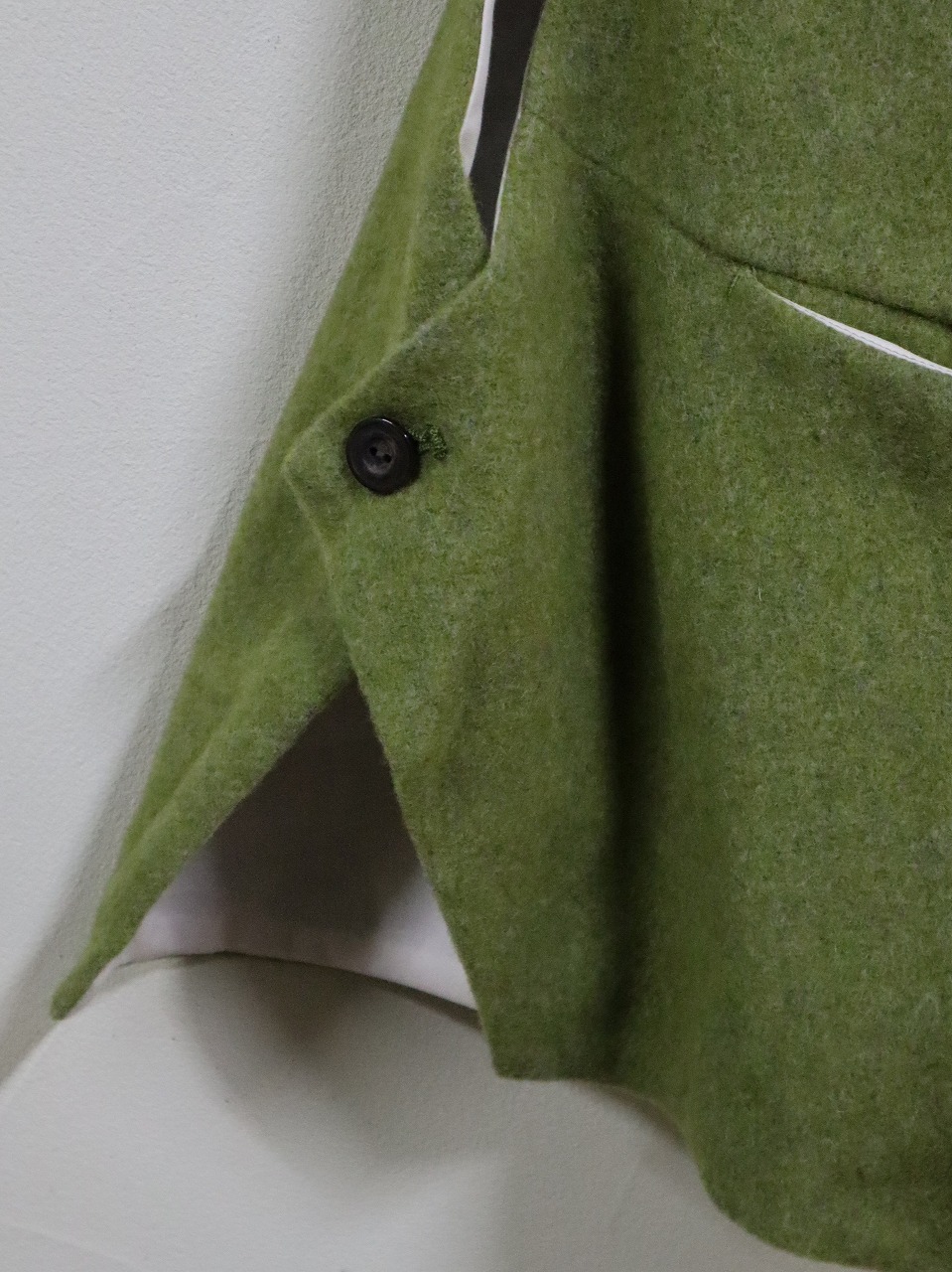 リサイクルウールを使用したエコ素材。起毛をかけて軽量感とウォーム感を出したソフトな着心地の生地です。