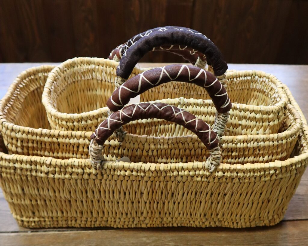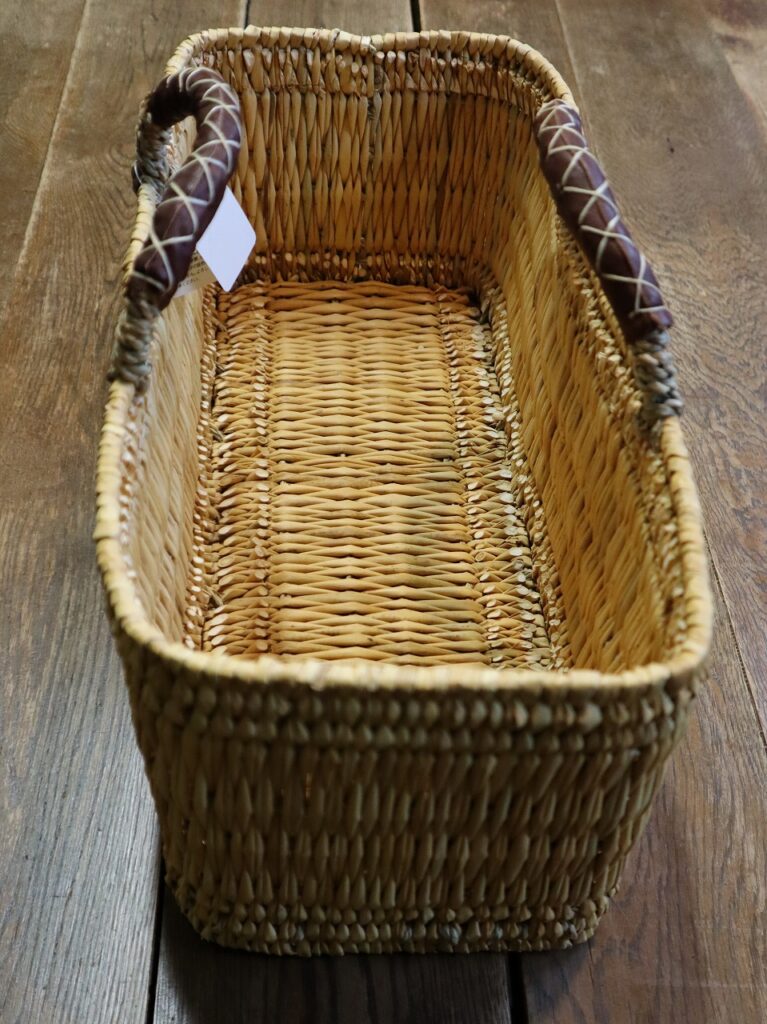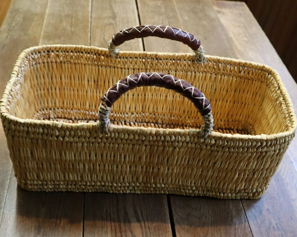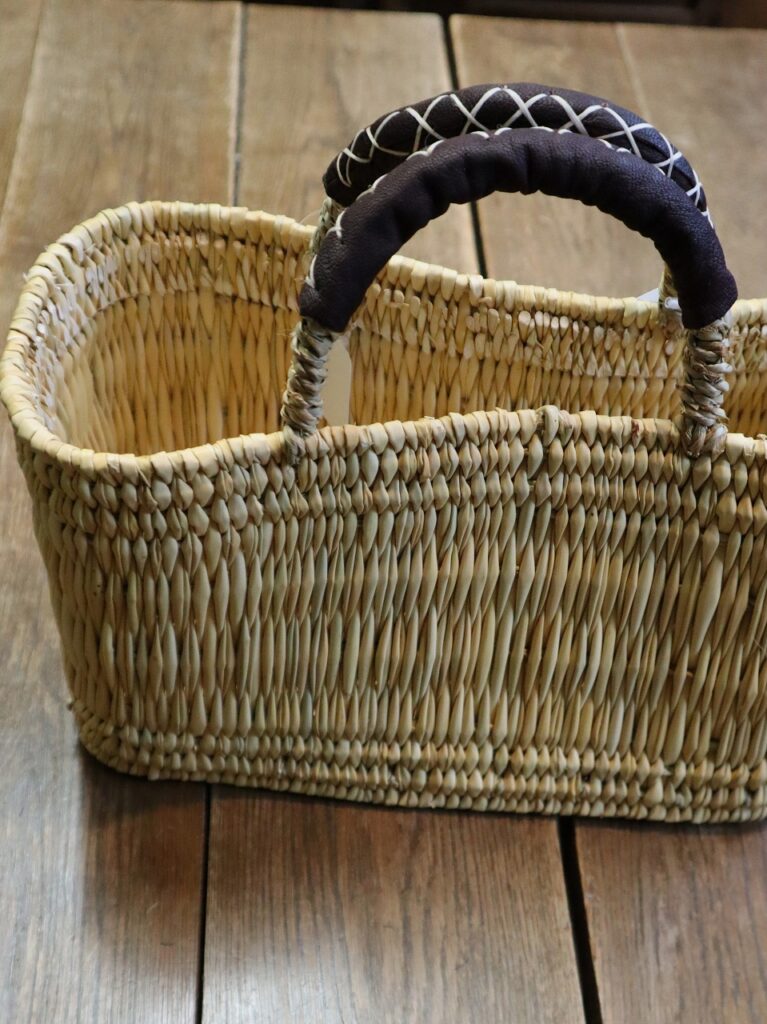 ストロー革手横長カゴ 再入荷